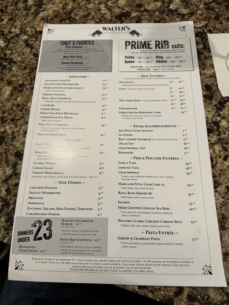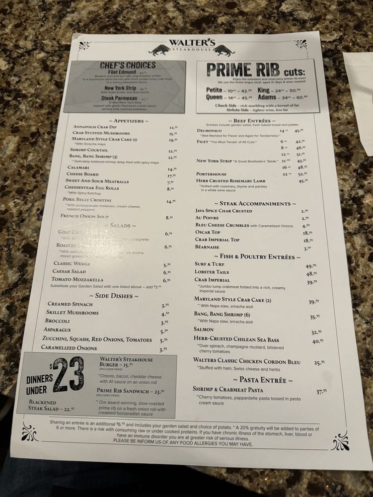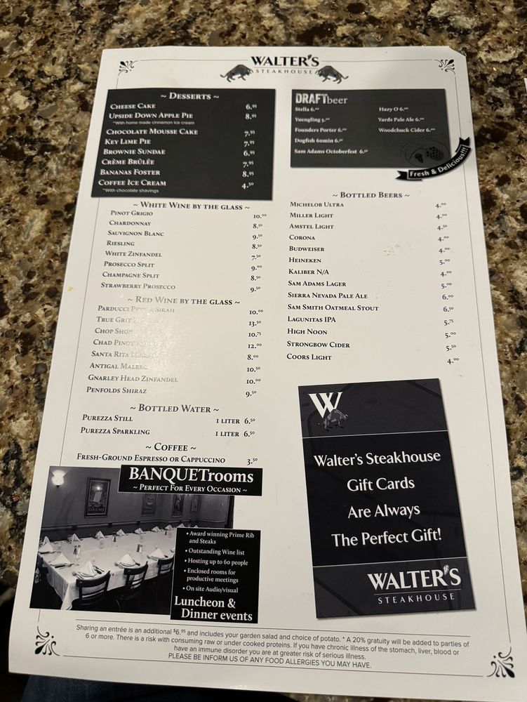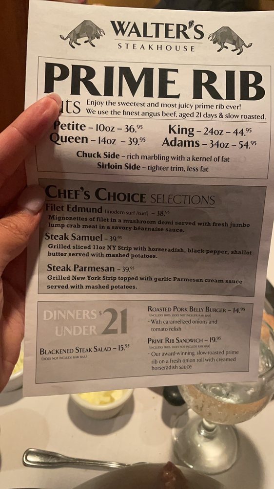 Introducing Walter's Steakhouse, a classic establishment in the heart of Wilmington, DE. Known for their prime rib and seafood, Walter's offers a diverse menu with options for everyone. The ambiance is classy and quiet, perfect for a romantic dinner or a special celebration. Customers rave about the attentive service and generous portion sizes. Highlights include the perfectly prepared lobster tails, sinful twice baked potatoes, and decadent Chesapeake crab dip. The steaks are top-notch, ranking among the best in the country. While some reviewers mention the need for a paint job, the old-school charm adds to the overall experience. Make sure to make a reservation, especially on Friday and Saturday nights, and enjoy a memorable dining experience at Walter's Steakhouse.